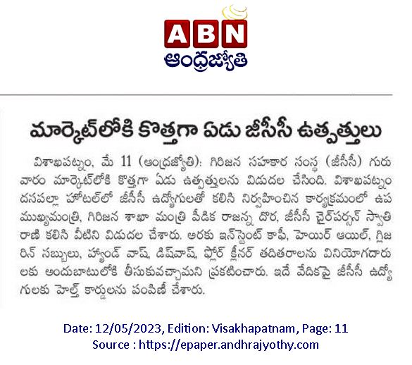 • జిసిసి వయా బిగ్ బాస్కెట్ • అటవీ ఉత్పత్తుల అమ్మకానికి కార్పోరేట్ తో జోడీ • హాస్టళ్లకు చింతపండు , కారం , పసుపు సరఫరాకు ప్రణాళిక : జి. సురేష్ కుమార్, జిసిసి మేనేజింగ్ డైరెక్టర్ & వైస్ చైర్మెన్ ప్రజాశక్తి దినపత్రిక కథనం గిరిజనుల నుంచి గిరిజన సహకార సంస్థ (జిసిసి) సేకరిస్తోన్న అటవీ ఉత్పత్తులు , పంటలు అమ్మకానికి కార్పొరేట్ సంస్థ అయిన బిగ్ బాస్కెట్ జోడీ కట్టనుంది. ఇందుకు సంబంధించి ప్రణాళికలు రూపొందించింది. ప్రభుత్వ వసతి గృహాలకు చింతపండు , కారం , పసుపు సొంతంగా సరఫరా చేసేందుకు సిద్ధమవుతోంది. వ్యాపారాభివృద్ధికి కొత్త మార్గాలను అన్వేషిస్తోంది. తద్వారా తన ఆర్థిక పరిస్థితి మెరుగుపర్చుకోవాలని భావిస్తోంది. ఏజెన్సీ ప్రాంతం అటవీ ఉత్పత్తులు , ఆర్గానిక్ పంటలకు బహిరంగ మార్కెట్లో మంచి డిమాండ్ ఉంది. దీంతో , వీటి సేకరణ పెంచే దిశగా జిసిసి అడుగులు వేస్తోంది. ఈ సంస్థకు మార్కెటింగ్ నెట్ వర్క్ పరిమితంగా ఉంది. దీంతో , ' బిగ్ బాస్కెట్ ' సంస్థ ద్వారా ఉత్పత్తులను వినియోగదారుల దగ్గరకు తీసుకెళ్లాలని యోచిస్తోంది. దీనివల్ల అమ్మకాలు పెరుగుతాయని , లాభాలు వస్తాయని భావిస్తోంది. ఇది విజయవం...